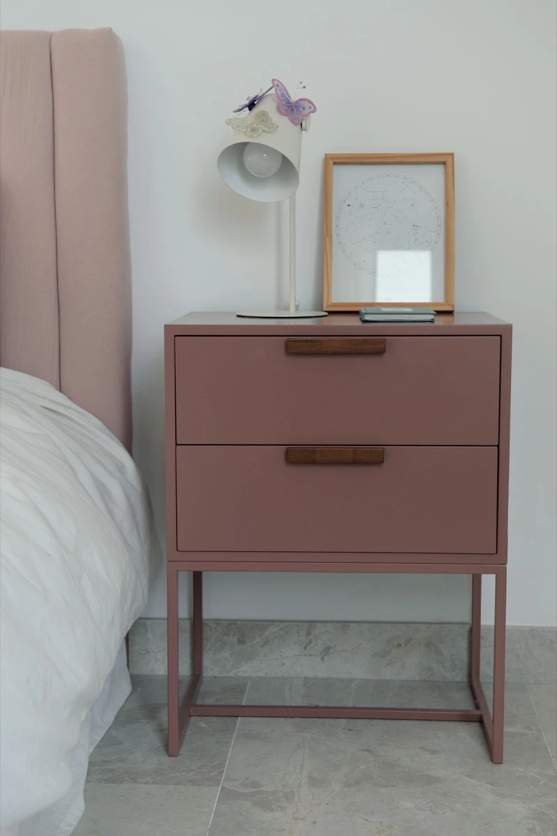 El diseño del dormitorio de la más chica de la casa se distingue por su paleta de colores clara y delicada; se destacan el blanco y el rosa Dior presente en el respaldo de cama (@otilia.deco) a tono con las cortinas, la mesa de luz y el escritorio (@altoranchoco).
