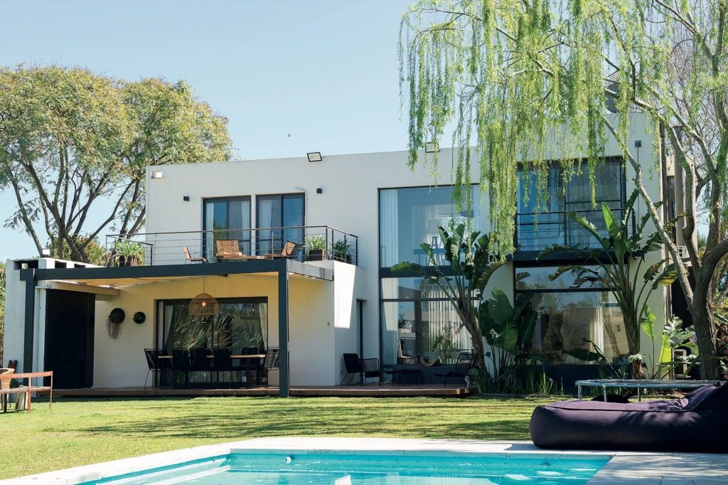 La decoradora Alex Ruiz (@conpasiondeco) le imprimió su particular estilo (y muchos de los muebles de su tienda) a su nueva casa ubicada a la vera de un canal. Hierro y madera compiten en protagonismo con las plantas tropicales que enmarcan la vivienda.