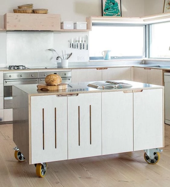 Pero la última tendencia en cocinas es el uso de islas con ruedas, las cuales se pueden bloquear fácilmente y de forma segura.