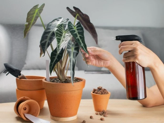 El uso de la calefacción en espacios cerrados genera ambientes secos. Por eso resulta súper importante rociar de vez en cuando las hojas de las plantas para incrementar la humedad ambiental. De esta manera, se evitan las puntas secas y las hojas amarillentas.