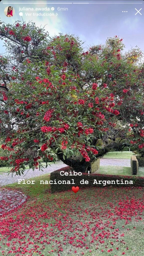 Y la propuesta de este viernes consistió en mostrar uno de sus árboles favoritos. "Ceibo! Flor nacional de Argentina", escribió la empresaria junto a un emoji de corazón. En la foto que compartió en sus historias de Instagram se puede ver a este bellísimo árbol nativo en flor.