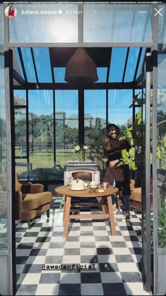 Un piso damero en blanco y negro que atrapa a primera vista. Un ramo de cosmos blancos recién cortado apoyado sobre una chimenea con carácter. Maderas rústicas, canastos de fibras naturales y dos sillones con aires vintage. Todo en esta imagen grita inspiración. Este fin de semana, Juliana Awada abrió las puertas de su jardín de invierno y, fiel a su estilo, marcó tendencia sin decir una sola palabra.