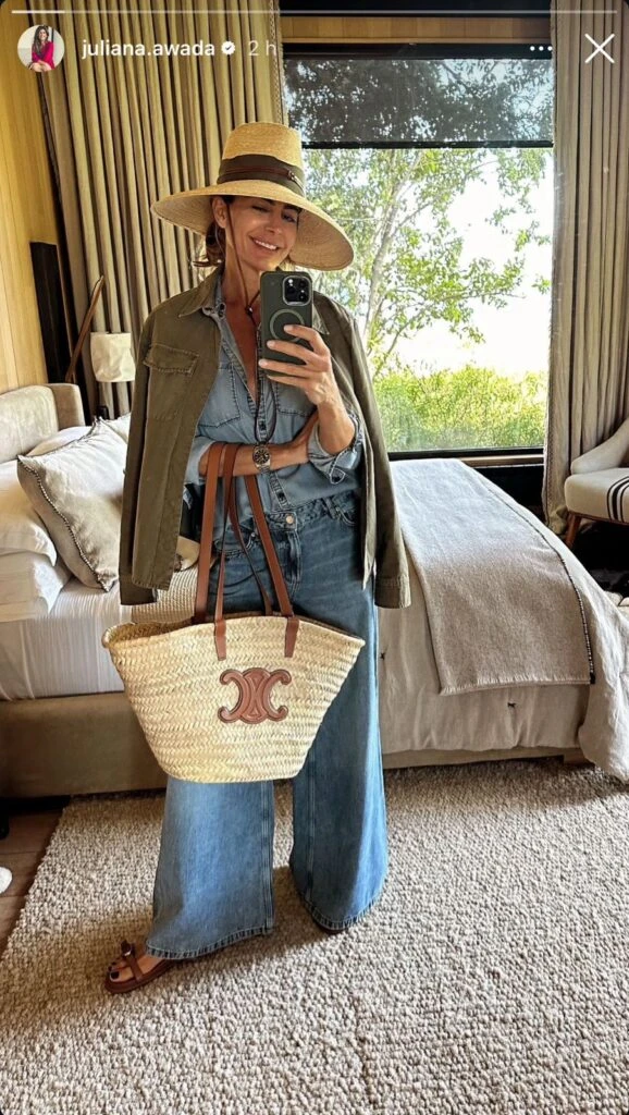 Por otro lado, la ex primera dama compartió una selfie en su dormitorio mostrando su cancherísimo e impecable look, perfecto para una tarde patagónica de verano. De pie junto a la cama, la empresaria aparece luciendo un estilismo total jean. Awada optó por un pantalón wide leg, una camisa también de jean y una campera de denim de color verde militar.
