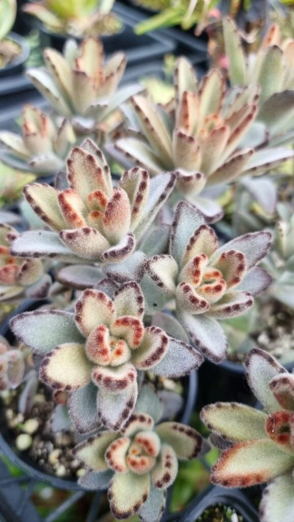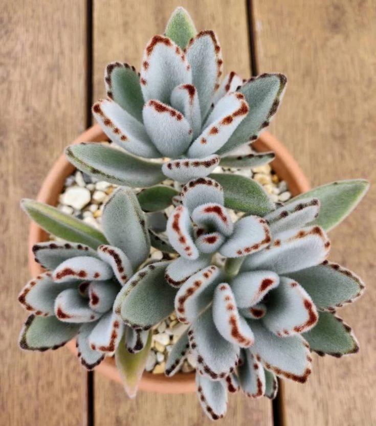 El Kalanchoe tomentosa es una suculenta que se destaca por sus hojas gruesas, carnosas, cubiertas de una suave pelusa que le da un toque tierno.
