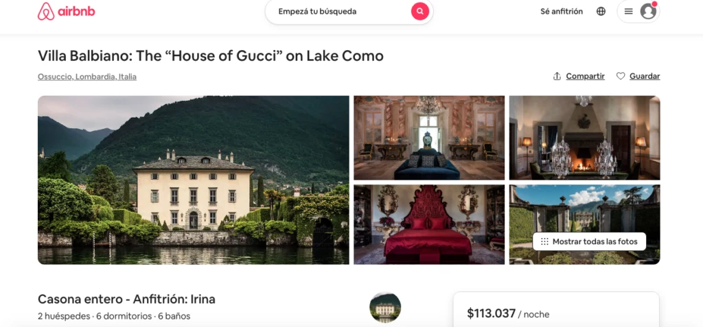Pero lo que aparece en la película no es un simple decorado. Se trata de Villa Balbiano, una de las mansiones más emblemáticas del lago Como, en Italia. Y para sorpresa de muchos, está disponible para alquilar en Airbnb a más de 100 mil pesos argentinos la noche.