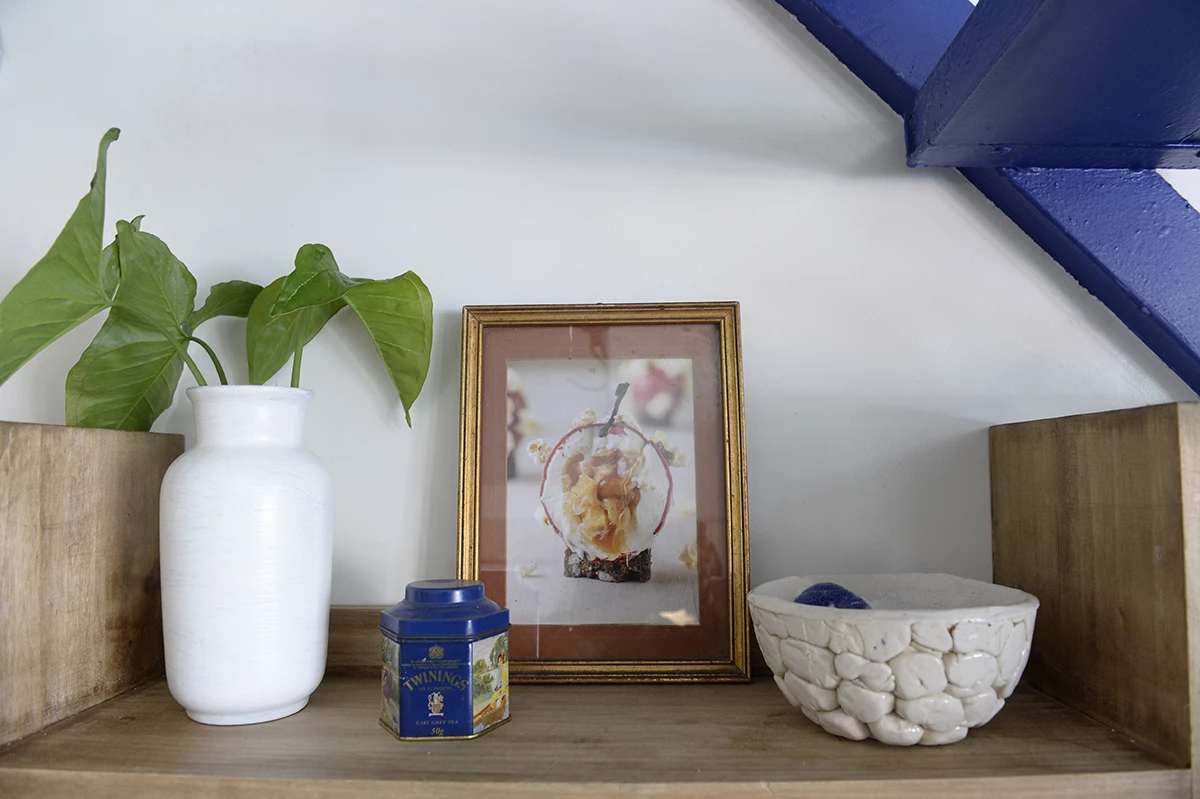La cocina de Belu habla y cuenta historias: hay objetos de diferente origen, rescatados y reciclados: mamushkas, bowls de cerámica, latas de té y libros de pastelería. Y muchos tesoros de familia: tazas y teteras de la mamá, jarras de plata y cristales de la abuela, y hasta la balanza de la bisabuela.