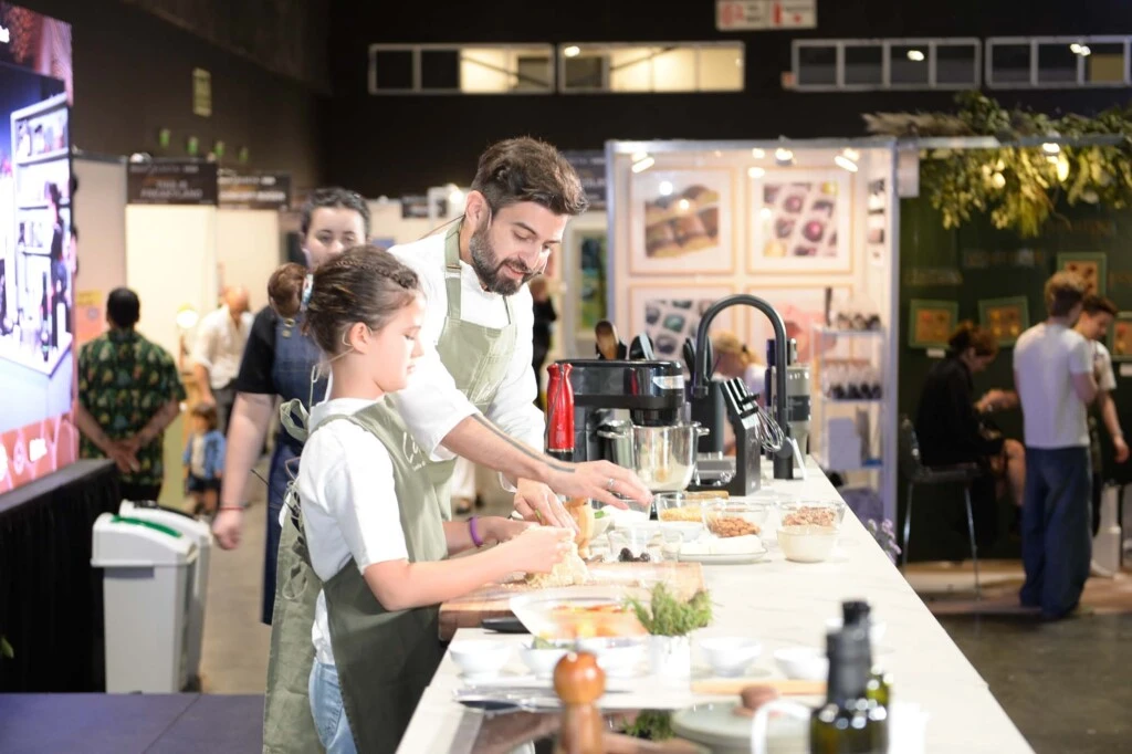 Junto a su hija, Matilda, Gustavo Teruel presentó una tarteleta de tomate, queso de cabra y pesto que combinó frescura, sabor y técnica en cada preparación. La armonía de colores y texturas convirtió a cada bocado en una experiencia sensorial que encantó a los asistentes.