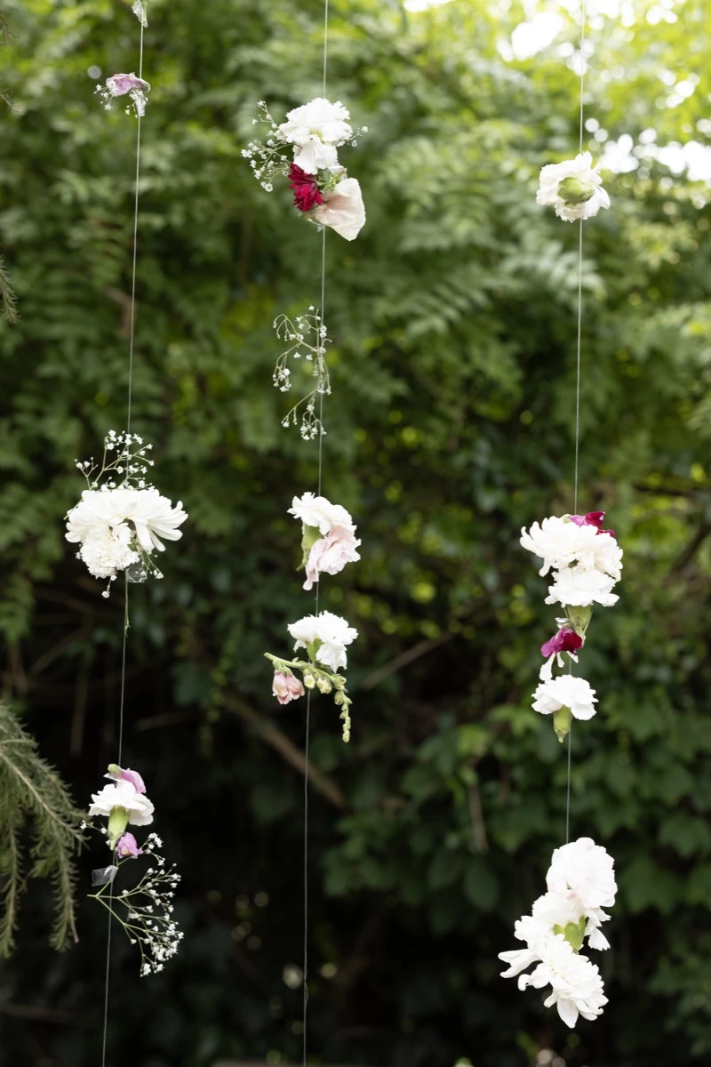Las flores naturales —en tonos verdes, blancos y rosados— (@florencia.eventos_) y el aroma a jazmín completan la experiencia multisensorial.