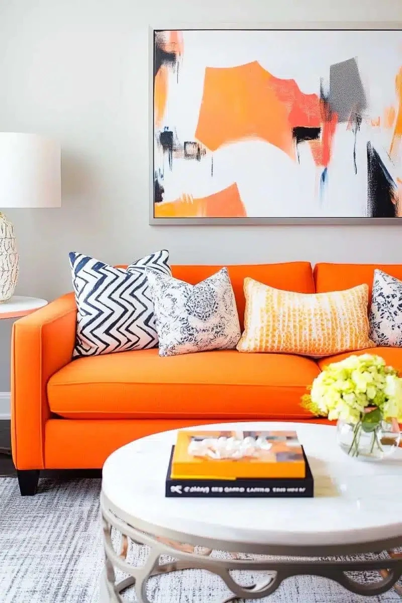 ¿En qué ambientes usarlo? El color naranja Aperol se adapta a distintos espacios, pero luce especialmente bien en el living: en sillones, alfombras o detalles decorativos.