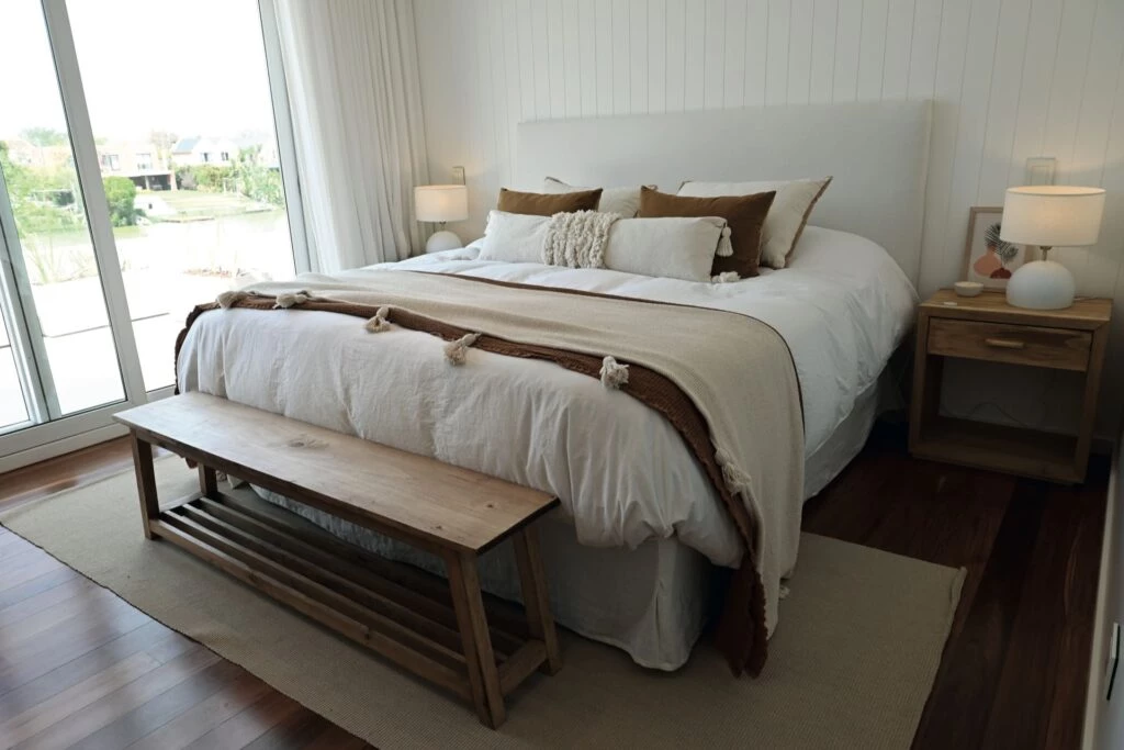 Al momento de colocar la alfombra en el cuarto, podés elegir entre dos opciones: desde el inicio de las mesas de luz o después de ellas.