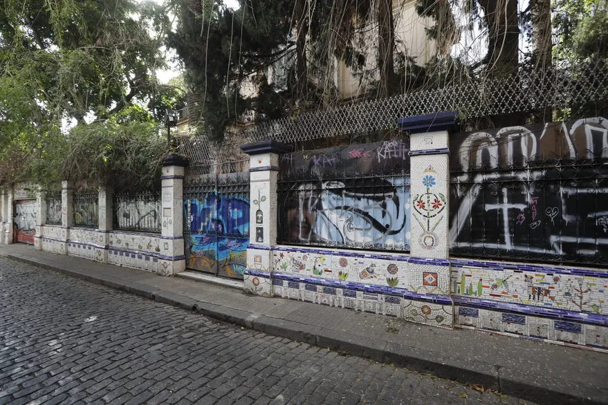 Pero hoy en día su fachada es una obra de arte hecha con mosaicos principalmente blancos. Y lo que parecen detalles al azar no lo son, ya que cada columna representa a un miembro de la casa. La creadora del mural es Graciela Barreto, profesora en La Plata, que estuvo ocho meses diseñando la pieza y cuatro fines de semana para su instalación contigua al portón.