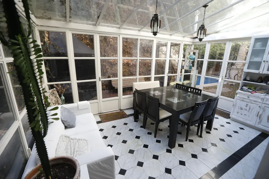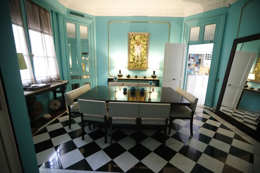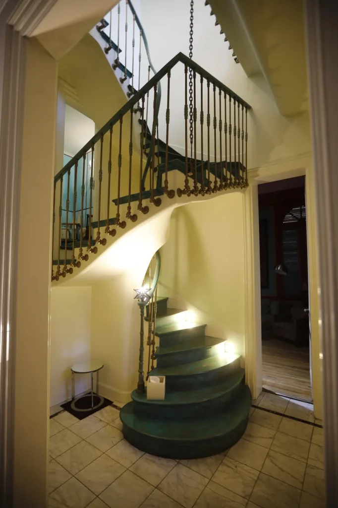 Además, según las fotos publicadas por La Nación, cuenta con un bar, un jardín de invierno, pileta y una escalera caracol en color turquesa gastado.