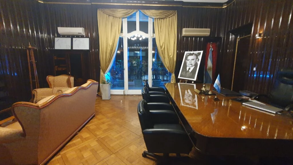 En la planta baja –que tiene mayor altura que las demás-, estaban las rotativas. En el primer nivel se ubicaban los salones del directorio y, en el siguiente, la oficina de Botana (con pisos con ilustraciones del calendario azteca y vitrales de motivos solares), la biblioteca, el archivo y el salón de actos.