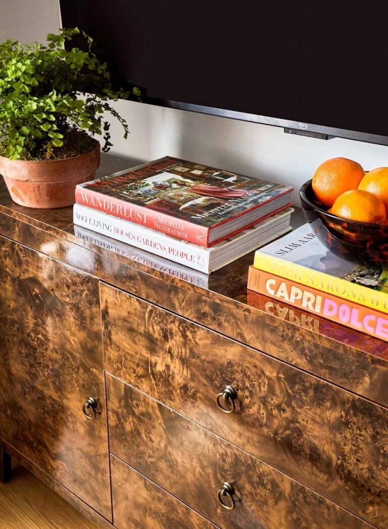 Cada pieza es única. “Y esto es justamente lo que vuelve a la madera burl en un material tan valorado en diseño -apunta la arquitecta Constanza Delgado- No se trata solo de una estética distinta, sino de un recurso con mucha presencia visual, capaz de transformar una pieza en protagonista”.