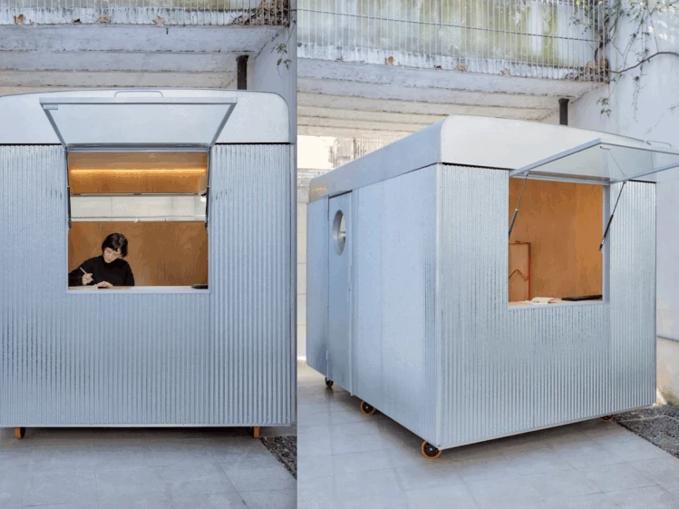 Prefabricada en el taller, desarmada, trasladada y ensamblada en un día según el proceso experimental de Taller Morsa. Así es la oficina rodante creada por Alejandra Esteve, arquitecta en la Facultad de Arquitectura, Diseño y Urbanismo de la Universidad de Buenos Aires.