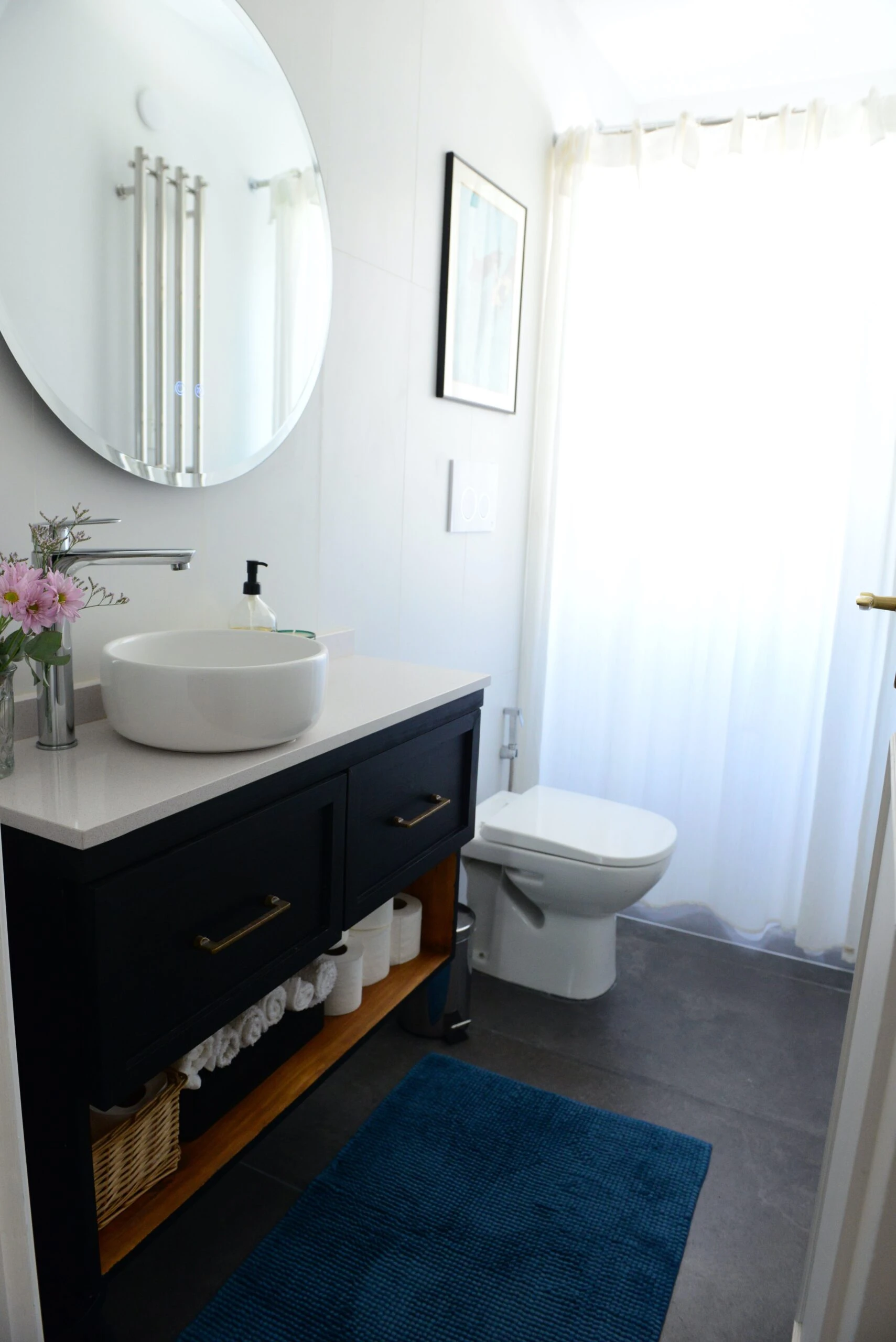El toilette sigue la línea de la casa y del otro baño, y a diferencia de antes de la reforma de Camila, ahora cuenta con ducha.