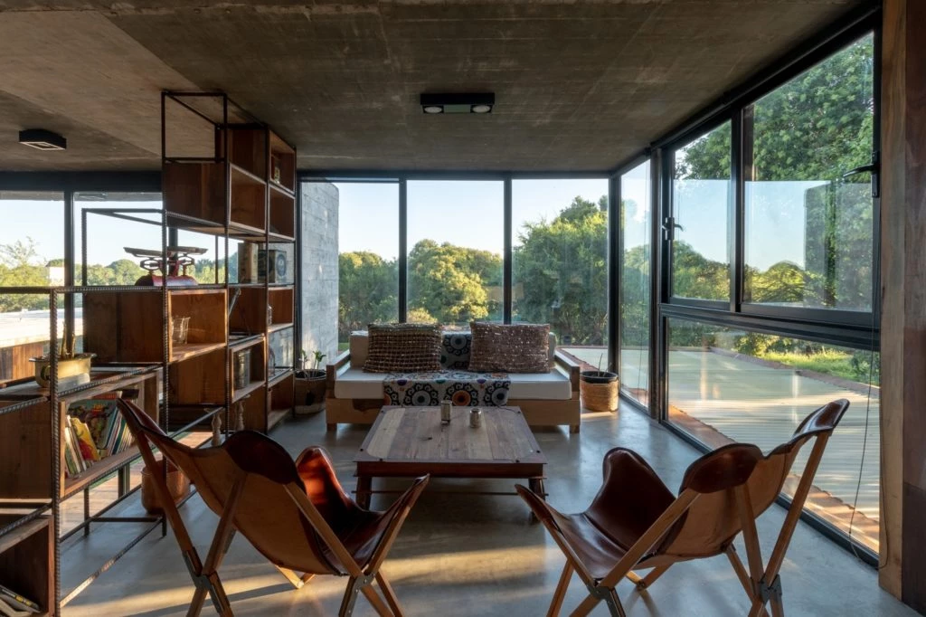 Una casa cálida y simple a los pies de la cordillera, que disuelve los límites entre interior y exterior