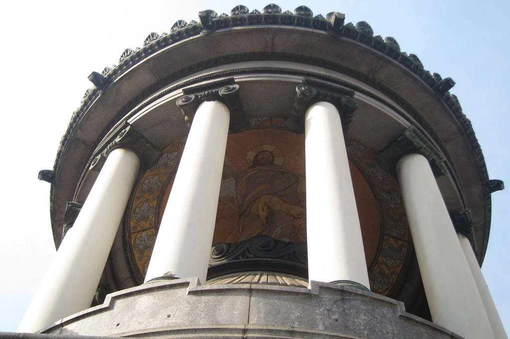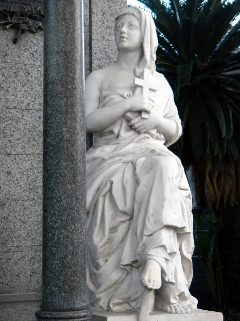 Esta bóveda posee dos esculturas que representan a los Santos Evangelios. Fueron esculpidas por Lola Mora -nada más, ni nada menos- pero fueron firmadas con el apellido de casada, Hernández.