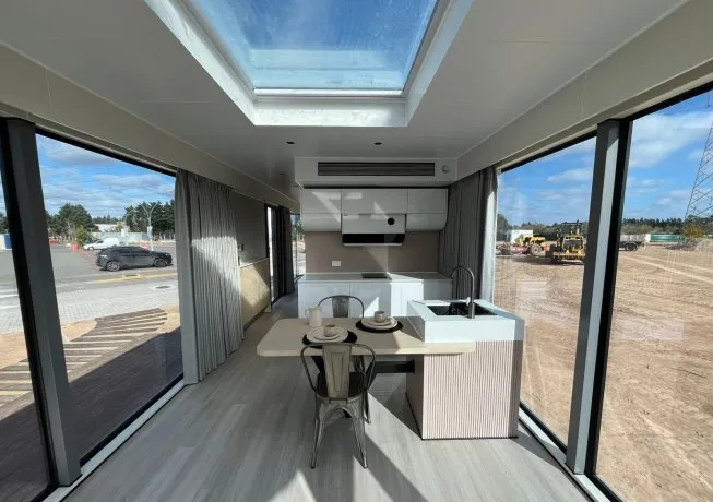 Paredes, techos y laterales están recubiertos de vidrio (doble hermético), lo que les da una estética futurista pero también eficiencia térmica y acústica. Además, el modelo se puede pedir con triple vidrio y caños calefaccionados para zonas frías.