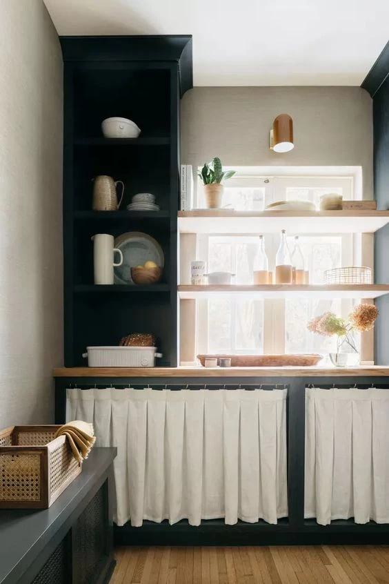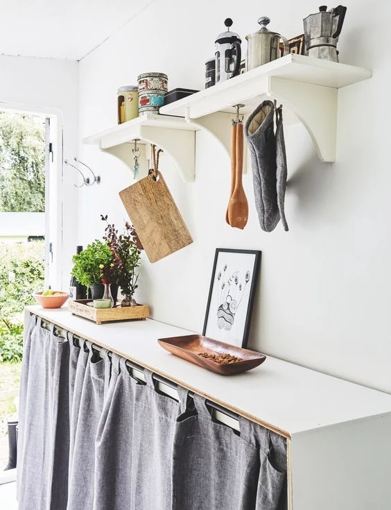 Dale vida a tu alacena con cortinas en lugar de puertas