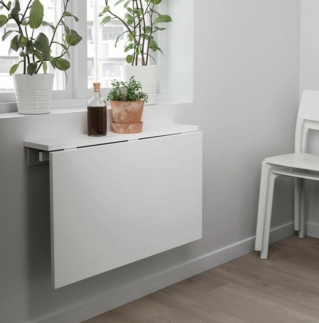 En cocinas o comedores pequeños, los muebles funcionales resultan grandes aliados para optimizar el espacio disponible. Una buena opción son las mesas plegables que se abren y se cierran según sus usos. Además, resultan económicas y cuentan con una amplia variedad en materia de diseños, materiales y colores.