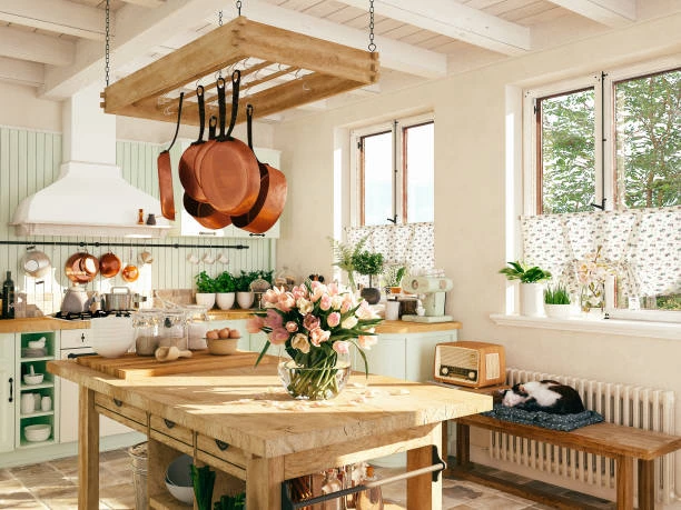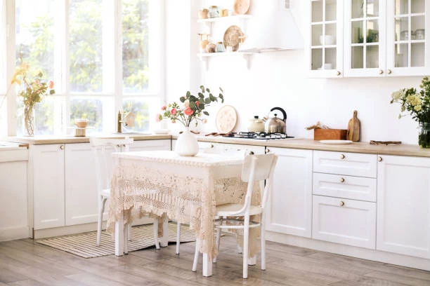 Las cocinas con toques románticos se caracterizan por tener una predominancia de colores claros y pasteles.