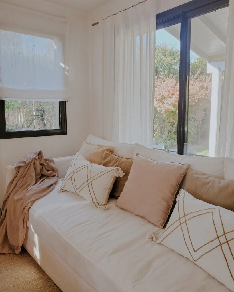 Géneros: más allá de la paleta elegida, el mix de textiles siempre es bienvenido. Si sos muy fan de los neutros, la mezcla de texturas será un gran aliado. Y también está buenísimo para variar según las estaciones con géneros más frescos como linos para verano y sumar lana en invierno.