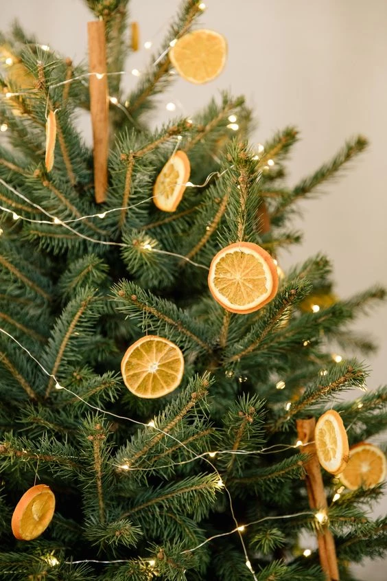 Naranjas disecadas, palitos de canela, ramos de eucalipto y flores son la última tendencia y se apoderan del árbol de Navidad para darle un look más natural y relajado.