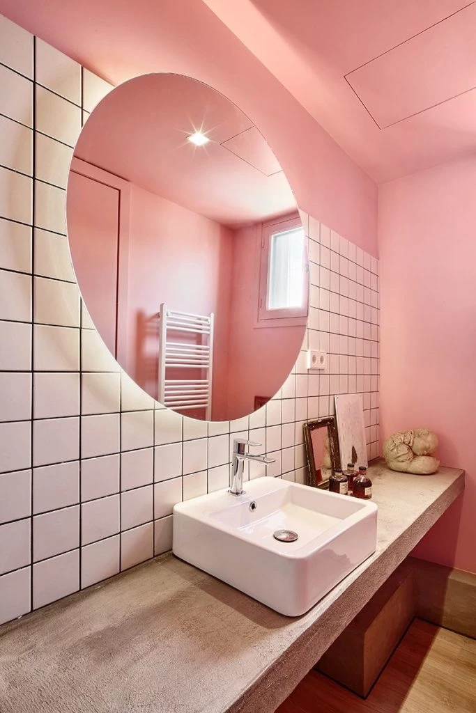- Darle un rosa pálido a una pared (por ejemplo, la de la ducha o el lavatorio)