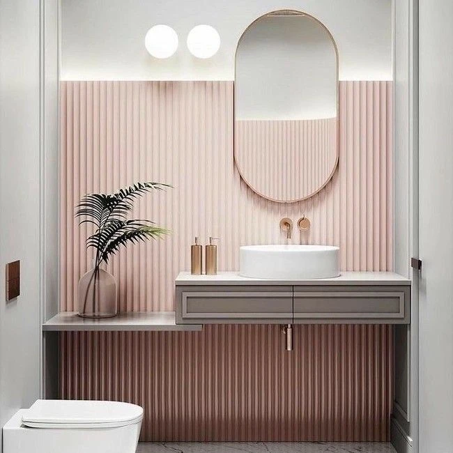 La incorporación del rosa al baño acepta versiones más tímidas o más jugadas. Por ejemplo podés: