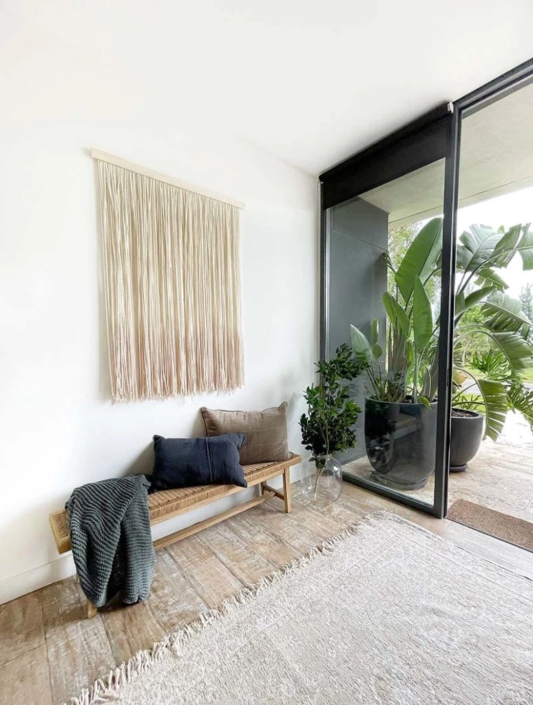 Recibir con un banco a familiares y amigos es invitarlos a sentirse como en casa. Además, te servirá para ponerte o quitarte cómodamente los zapatos, o simplemente descansar y tomarte un respiro cuando volvés de la calle. Para darle un toque más personal y cálido, podés sumar almohadones o mantas que lo complementen.