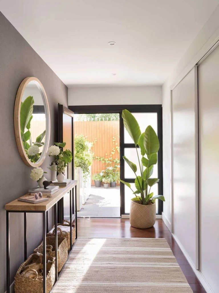 Fotos familiares, jarrones con flores frescas o plantas de moda, canastos de fibras naturales. Sumá en tu recibidor algún accesorio que le de a este pequeño espacio toda la personalidad.