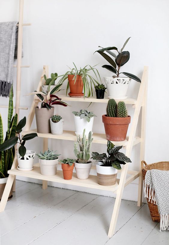 Para aprovechar la altura, podés sumar un estante flotante de madera y colocar sobre él diferentes plantas chicas.