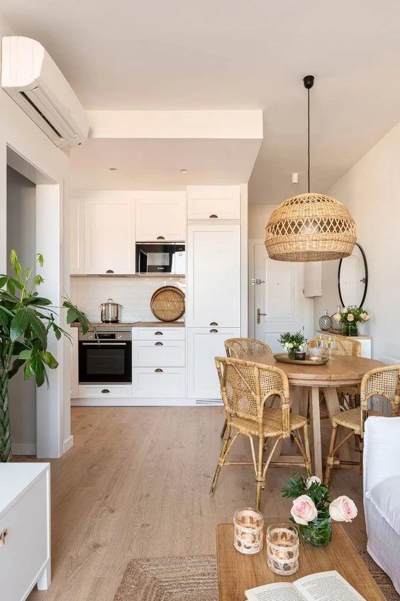 Para lograrlo, podemos optar por electrodomésticos multifuncionales, muebles que nos permitan tener un espacio contenedor, una mesa que permita guardar las sillas debajo, alacenas con múltiples contenedores o, inclusive, un mueble separador de ambientes con compartimentos.