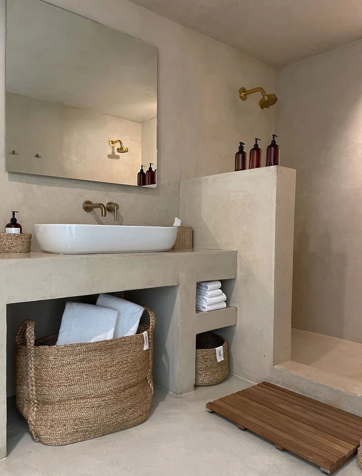 Los muebles flotantes no solo le dan un toque moderno a tu baño sino que también liberan espacio en el suelo, creando la sensación de amplitud. Además podés aprovechar la parte de abajo para sumar unos cestos bien cancheros para guardar elementos como papel higiénico, toallas y productos de limpieza.