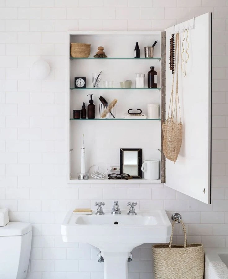 El clásico botiquín con espejo es un aliado eterno para ganar espacio de guardado sin sacrificar metros. Si tu baño es chico, optá por uno con profundidad extra para guardar más cosas sin que se note. ¡Haces 2x1!