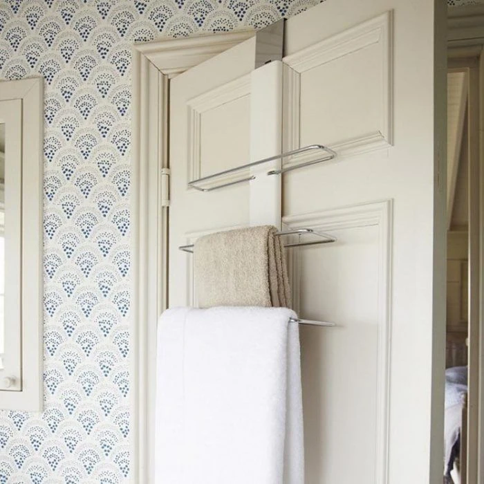 Si la puerta de atrás de tu baño está disponible, no dudes en instalar unos ganchos cancheros o un organizador colgante para toallas, batas o productos de uso frecuente. De esta manera vas a sumar sumar espacio sin que se vea sobrecargado.