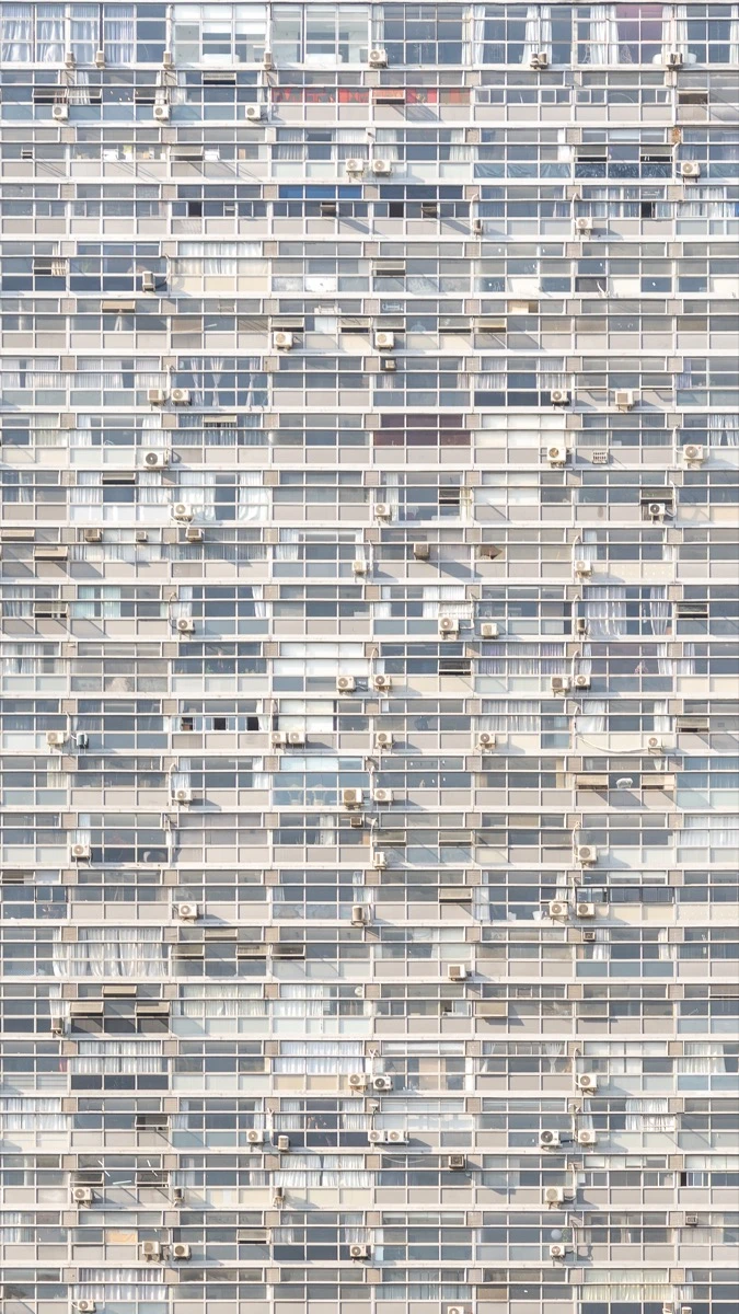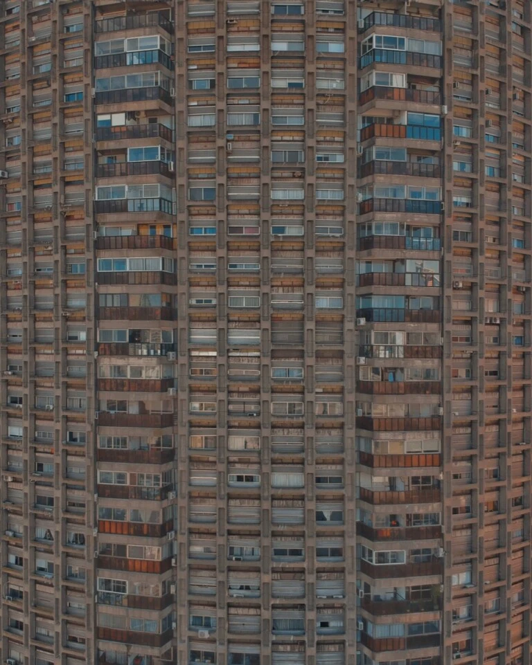 Hay ventanas que son perfectamente idénticas y otras que esconden pequeños cambios: una persiana baja, una cortina corrida, una planta asomando. Me fascina esa tensión entre lo arquitectónico y lo humano. El edificio propone orden; las personas lo alteran.