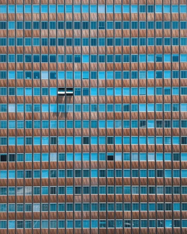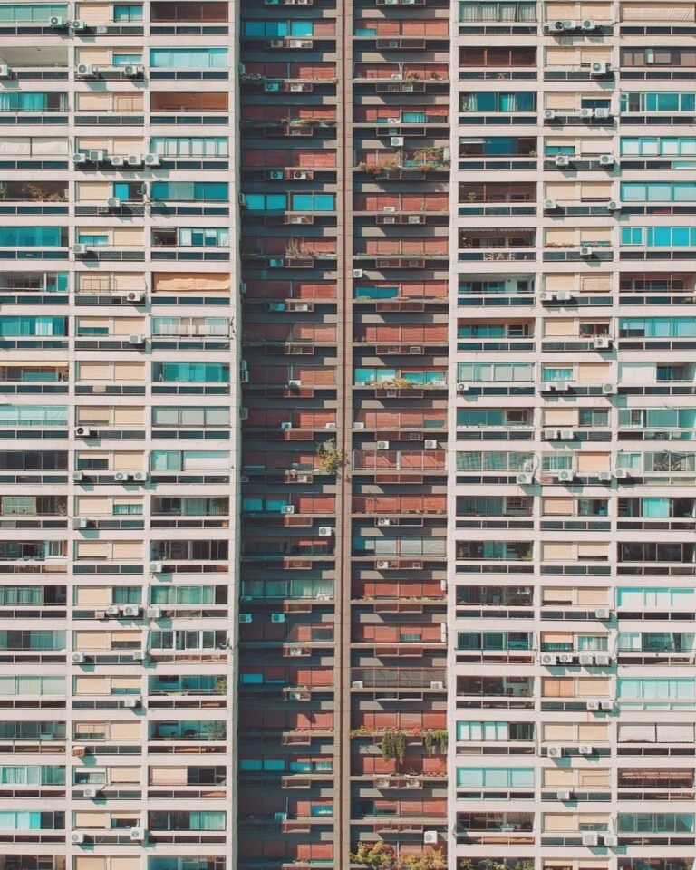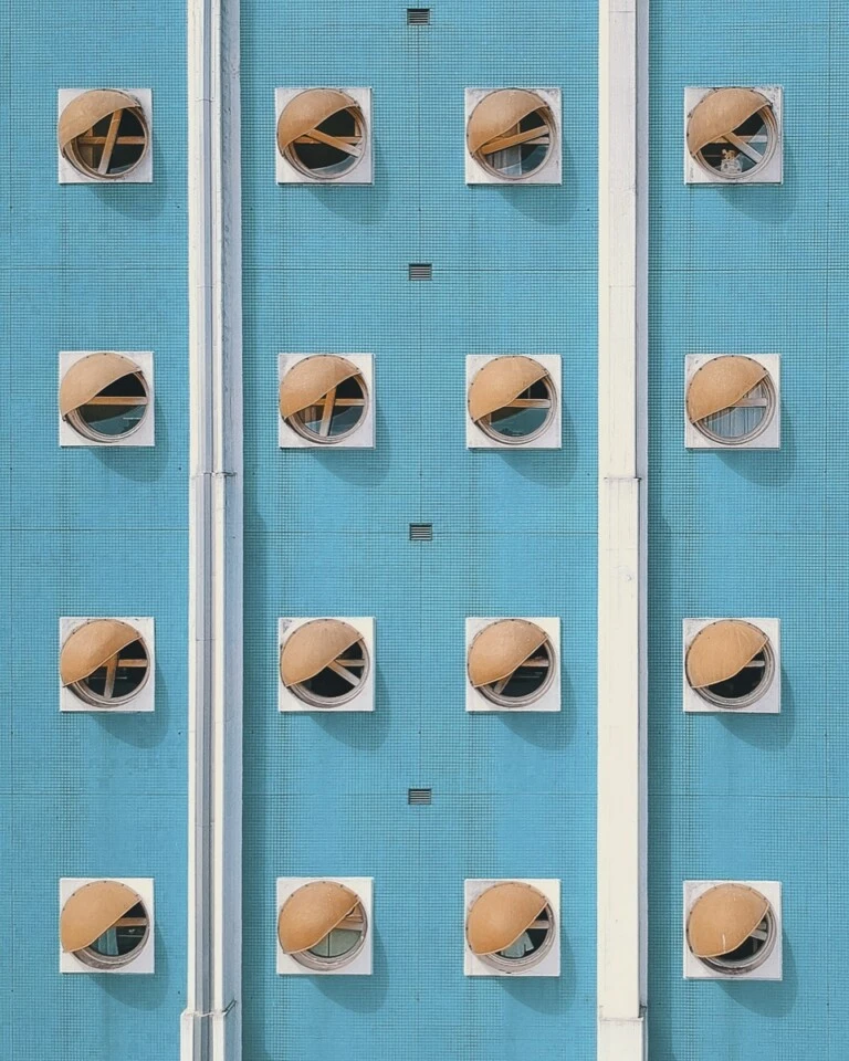 En el 2019 me compré el drone para sacar una foto específicamente: las ventanas del Hospital Naval de Clorindo Testa en Caballito. Con esa foto me di cuenta lo que me gustaba: aislar la repetición. Sacar el contexto, el ruido, centrarme únicamente en un patrón.