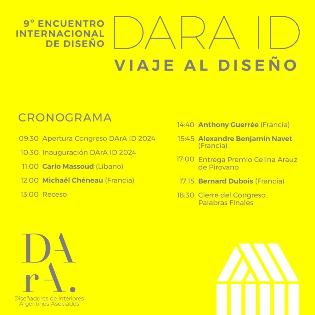 El lema de esta edición será "Viaje al diseño", un derrotero por el que nos llevará la variedad de voces, miradas y matices que tienen los disertantes de este encuentro organizado por DArA (la asociación sin fines de lucro que nuclea a arquitectos, decoradores e interioristas de todo el país) y con entrada libre y gratuita previa inscripción.