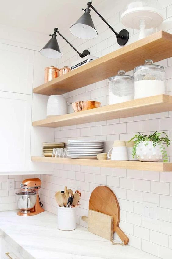 Los estantes flotantes ganan terreno y conquistan las cocinas de todos los tamaños y estilos decorativos. Y es que además de ser estéticos y livianos a la vista, son prácticos, funcionales, económicos y se los puede ubicar fácilmente en cualquier rincón.