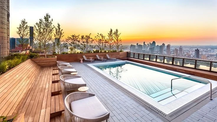 Las terrazas con amenities, como piscinas y solariums, son protagonistas en los edificios modernos de la ciudad.
