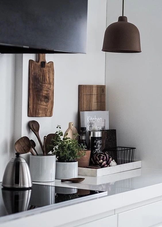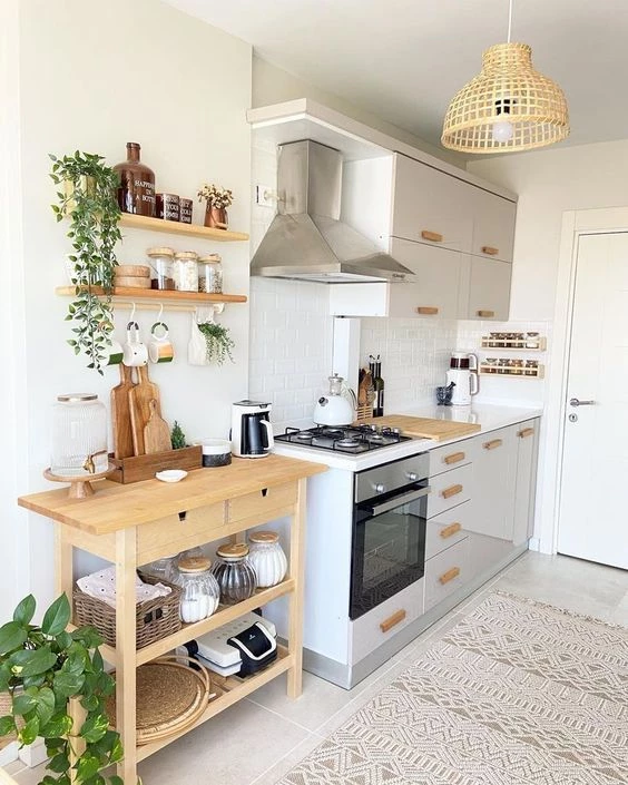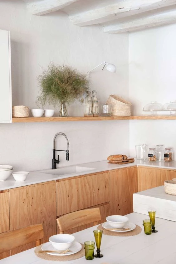 Y lo mejor de todo es que podés integrar la madera fácilmente, solo tenés que sumar algunos detalles como utensilios, tablas de cortar, estantes flotantes, etc. ¡Todo vale!