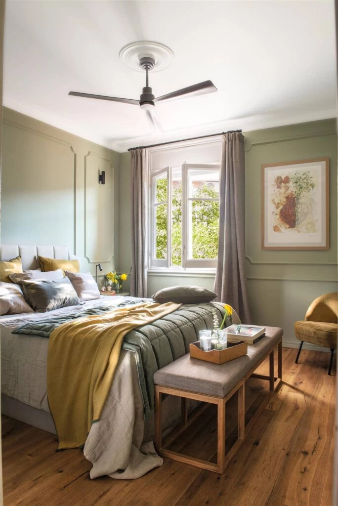 "Puede ser un banco como mesa de luz o como pie de cama. Una silla también puede resultar. La idea es generar un lugar donde apoyar las cosas que necesitás tener cerca de la cama: celu, libro, lámpara y transformarlo en un asiento complementario el día que, por ejemplo, recibís amigos", explica Constanza.