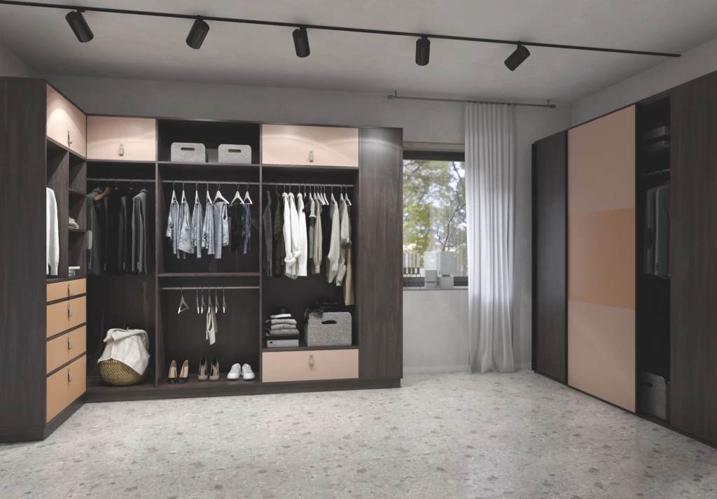 Otro aspecto fundamental son los herrajes. Para optimizar el espacio de guardado teniendo en cuenta el uso de cada uno se pueden adicionar organizadores, elevadores de ropa, así como correderas y bisagras convencionales o de sistema push.