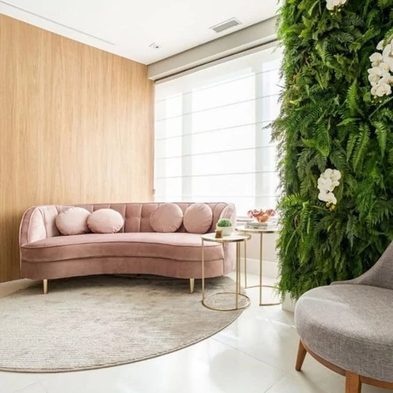 Una de las ventajas de apostar por un sofá curvo y voluminoso que rompa con las líneas rectas y paralelas del ambiente, es que no se necesitará incorporar nada más para que el espacio se identifique con esta tendencia en ascenso.