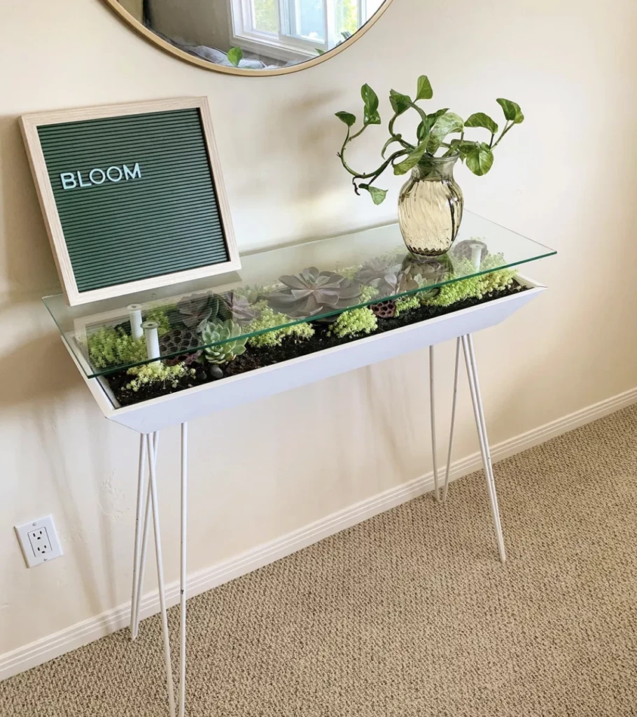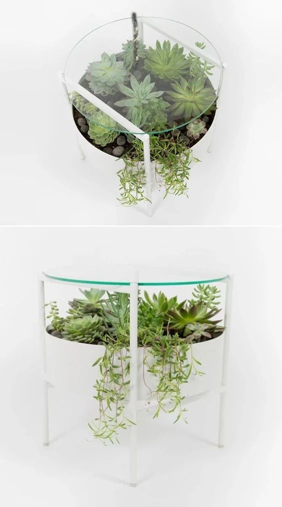 Tan funcionales como maravillosas, estas mesas exhiben las plantas como obras de arte. Una especie de "santuario botánico".