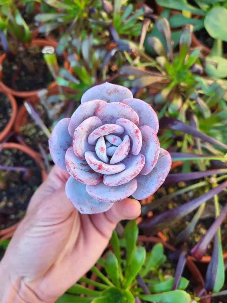 La echeveria es una suculenta muy famosa por sus hojas carnosas y en forma de rosa Esta planta es originaria de México y América Central, y es una de las más comunes de ver en jardines y arreglos florales. Además, ofrece una amplia variedad de colores, como verde, gris, rosa, rojo y morado, y algunas variedades también tienen bordes dentados o cubiertos de pequeños pelos.