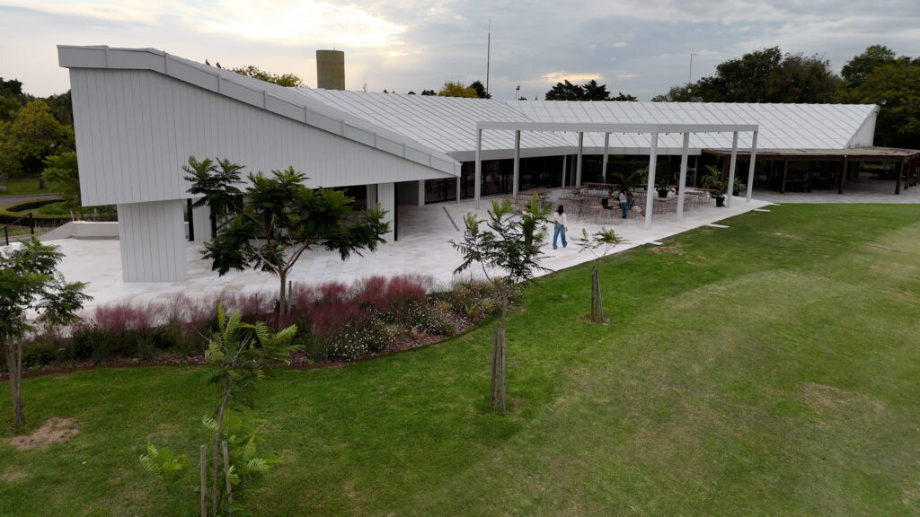Clara recibió a Mechi en abril de este año y le contó todos los detalles detrás del diseño de este Club House. La obra original fue realizada por el arquitecto Mario Roberto Álvarez hace más de 40 años.