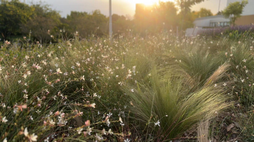 “Cuando abordé este proyecto también investigué mucho. Me inspiré en Piet Oudolf”, agregó. Así nació esta gran pradera que abraza y acompaña el espacio.